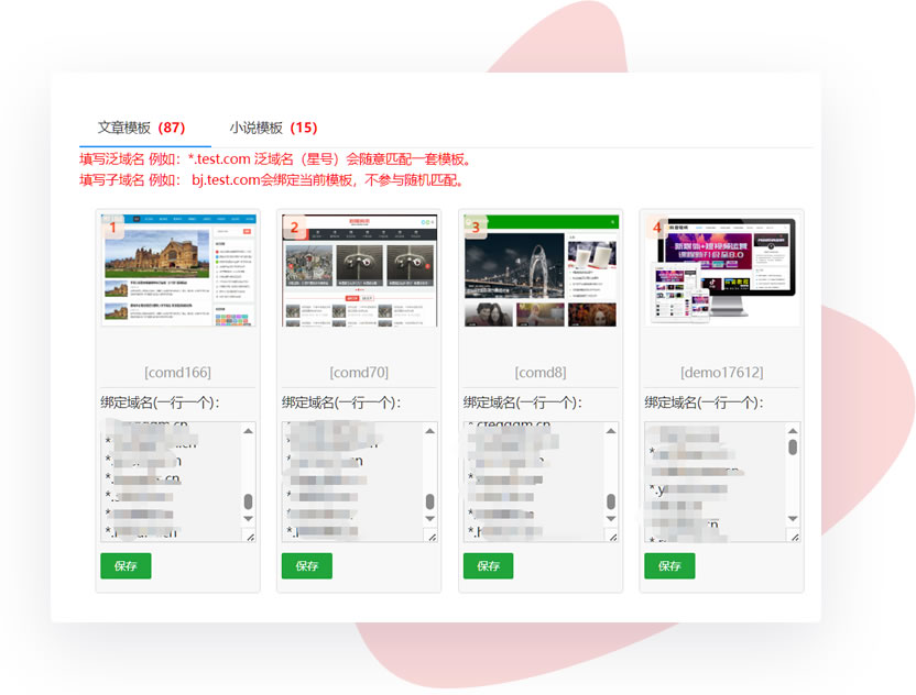 多域名+泛域名模式,轻松让您拥有上千个站点